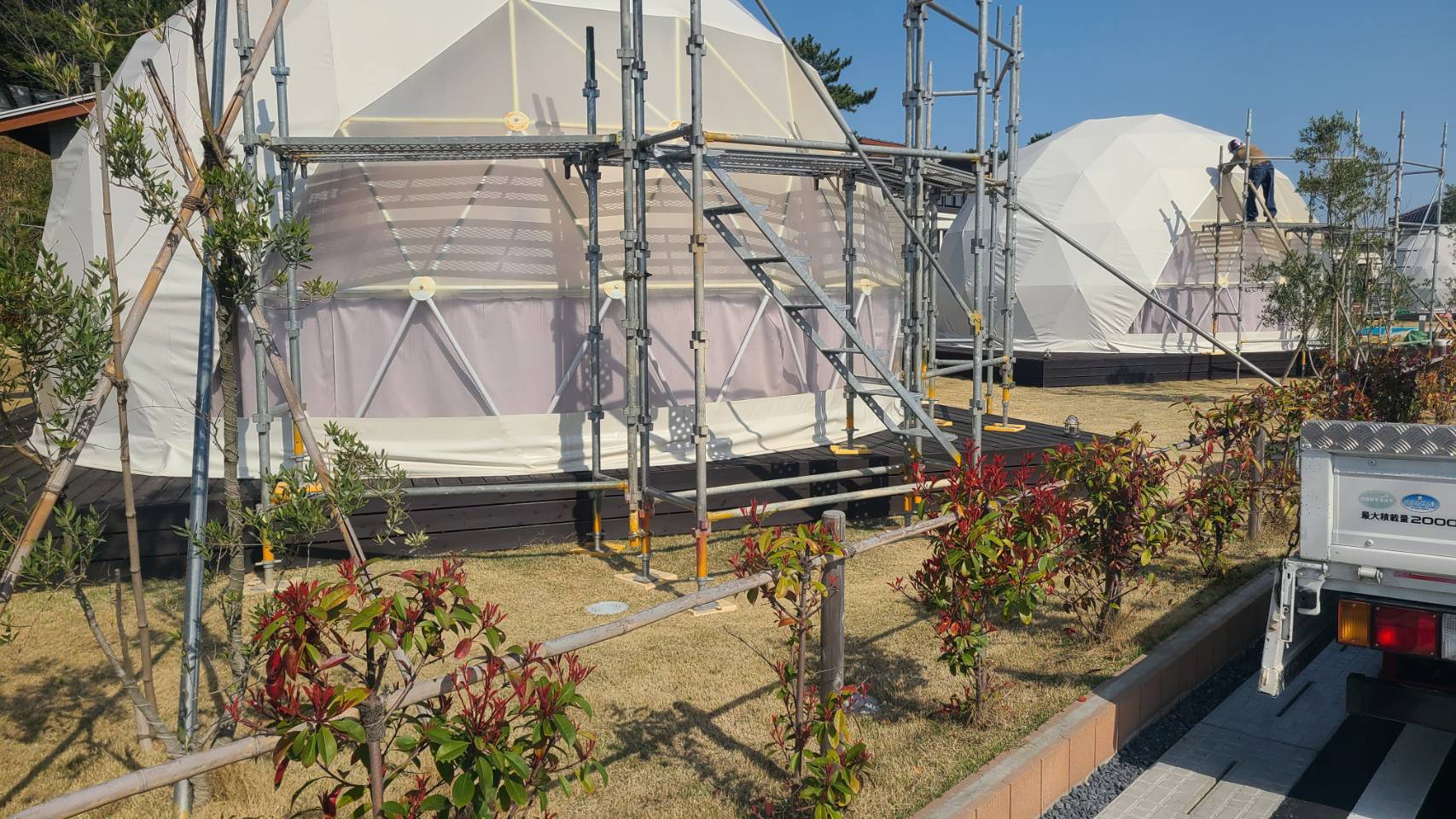 引き続き2日目某グランピング施設のテント張替え用足場組立解体。