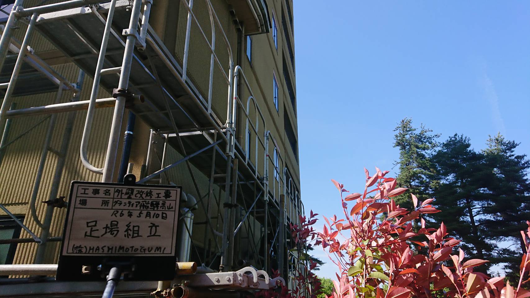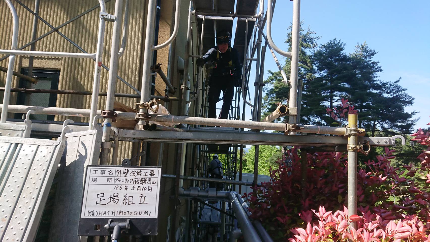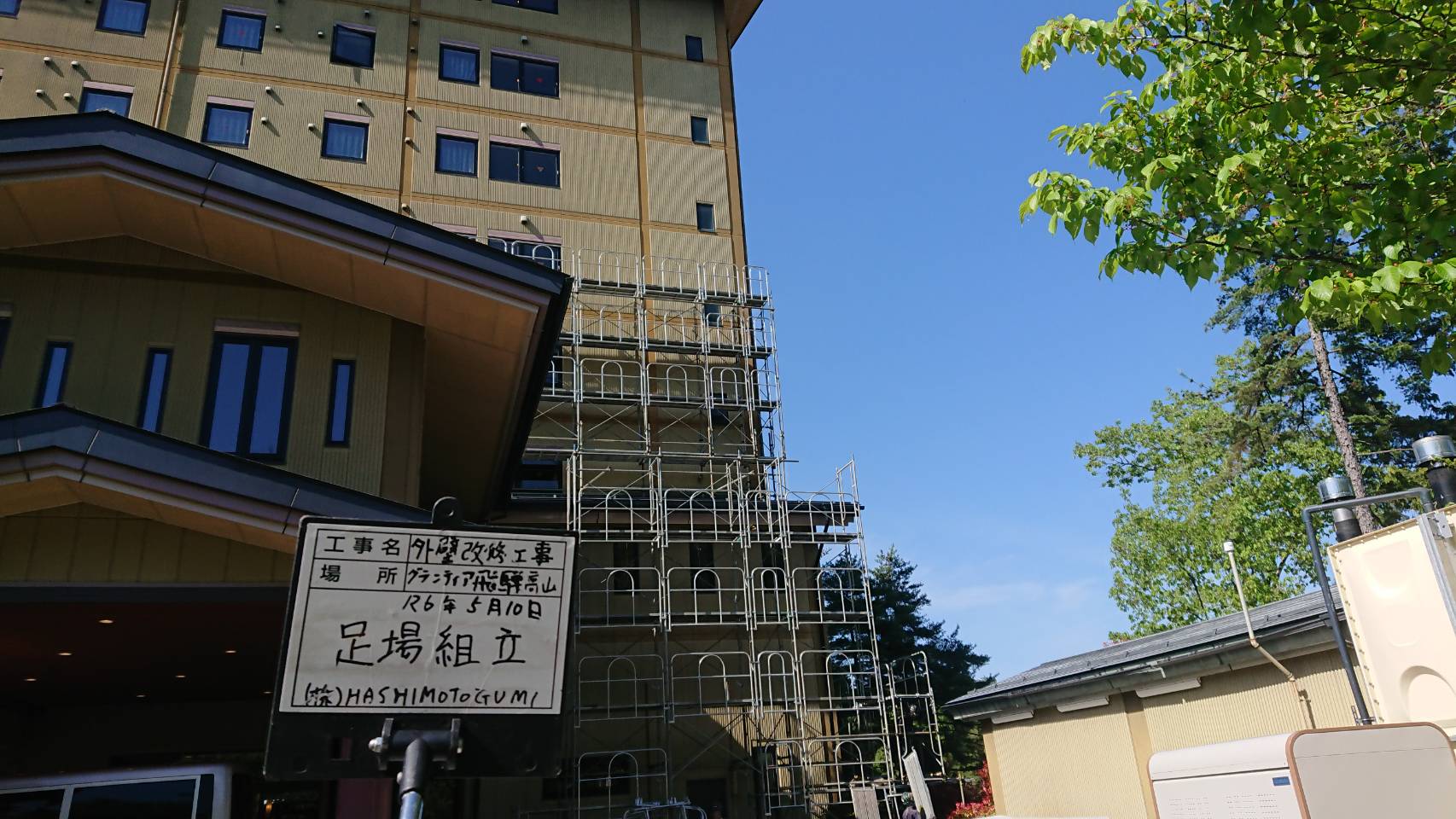 引き続き大型仮設資材運搬と改修用足場組立て。