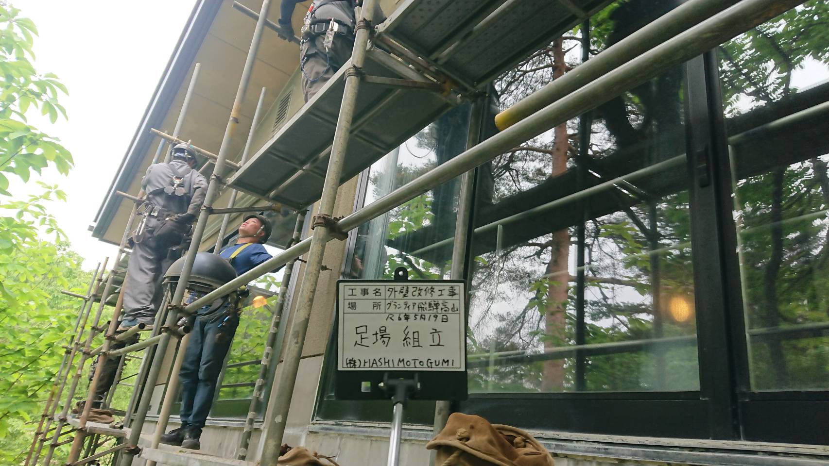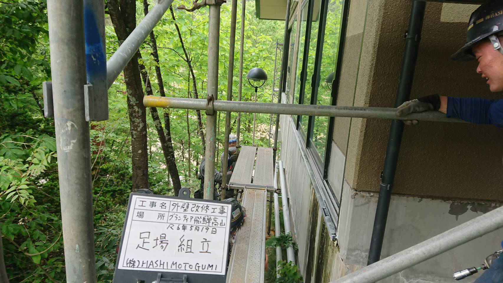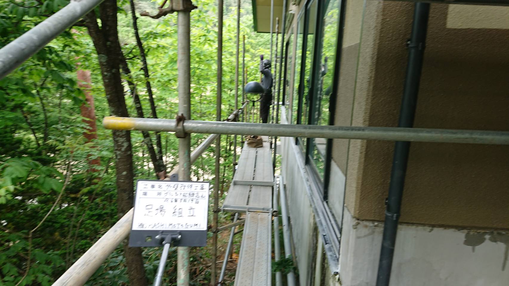 引き続き改修用足場組立て。