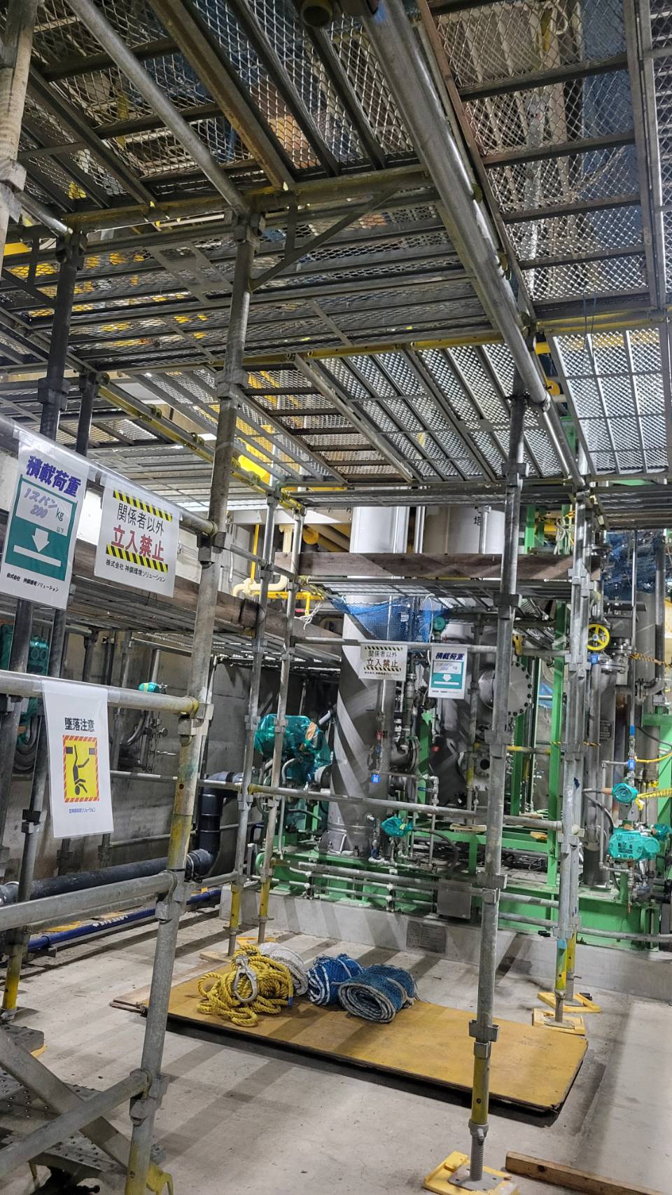 某処理場の内部設備改修用足場組立て。