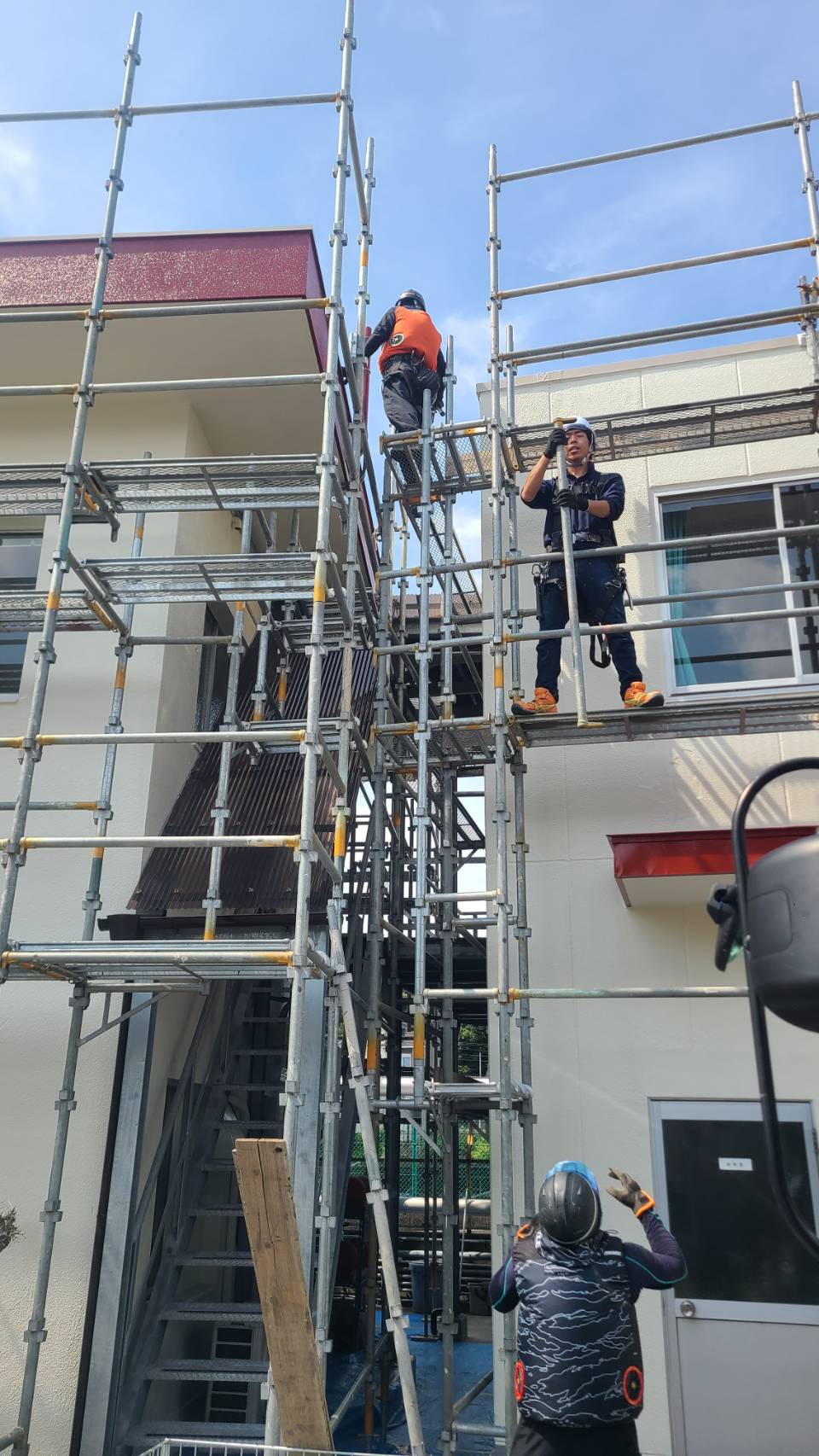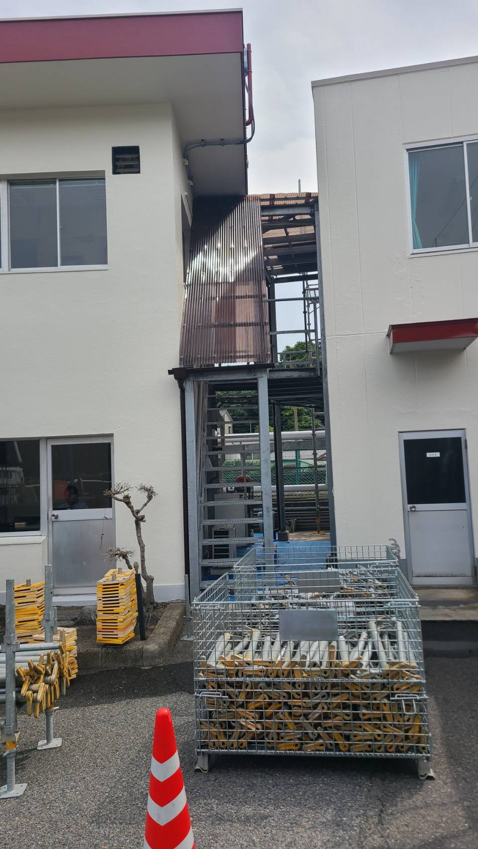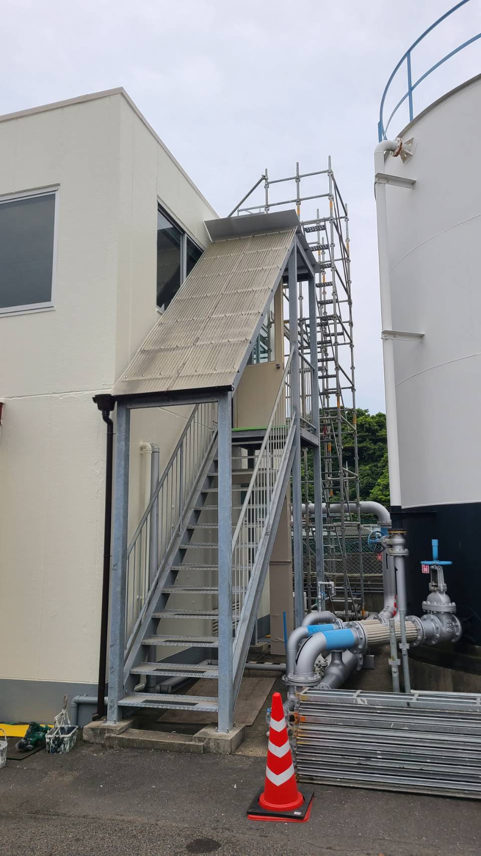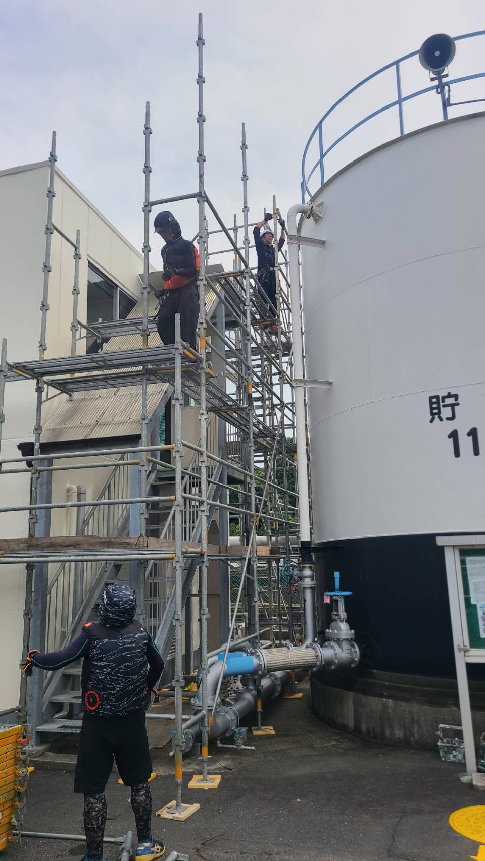 某備蓄タンク事務所棟等改修用足場解体。
