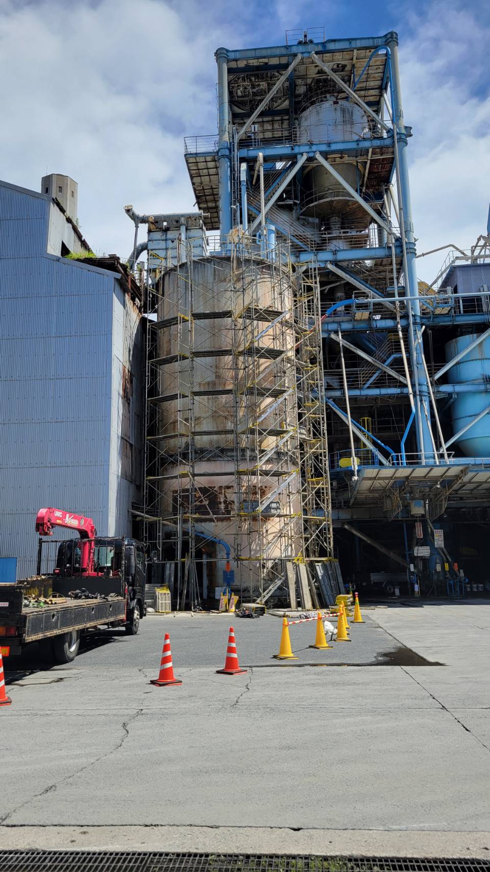 某工場の塗装用足場組立て。