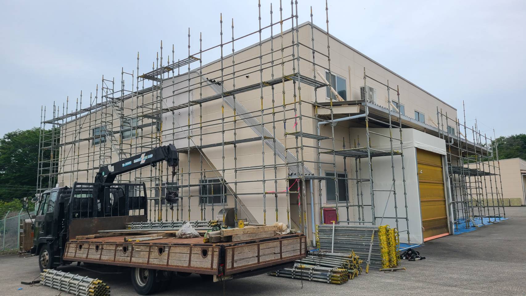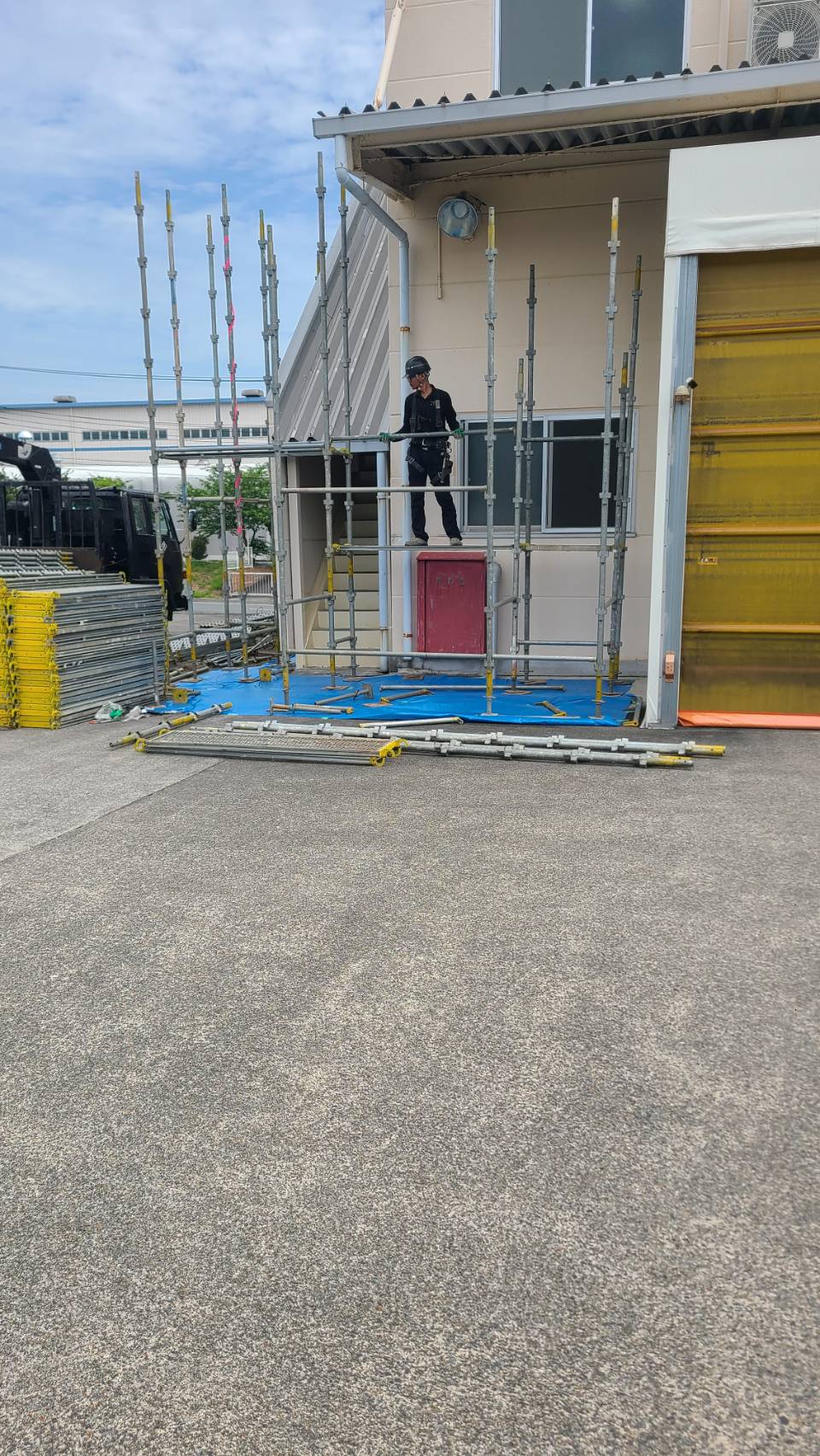 引き続き、某工場の改修用足場組立て。