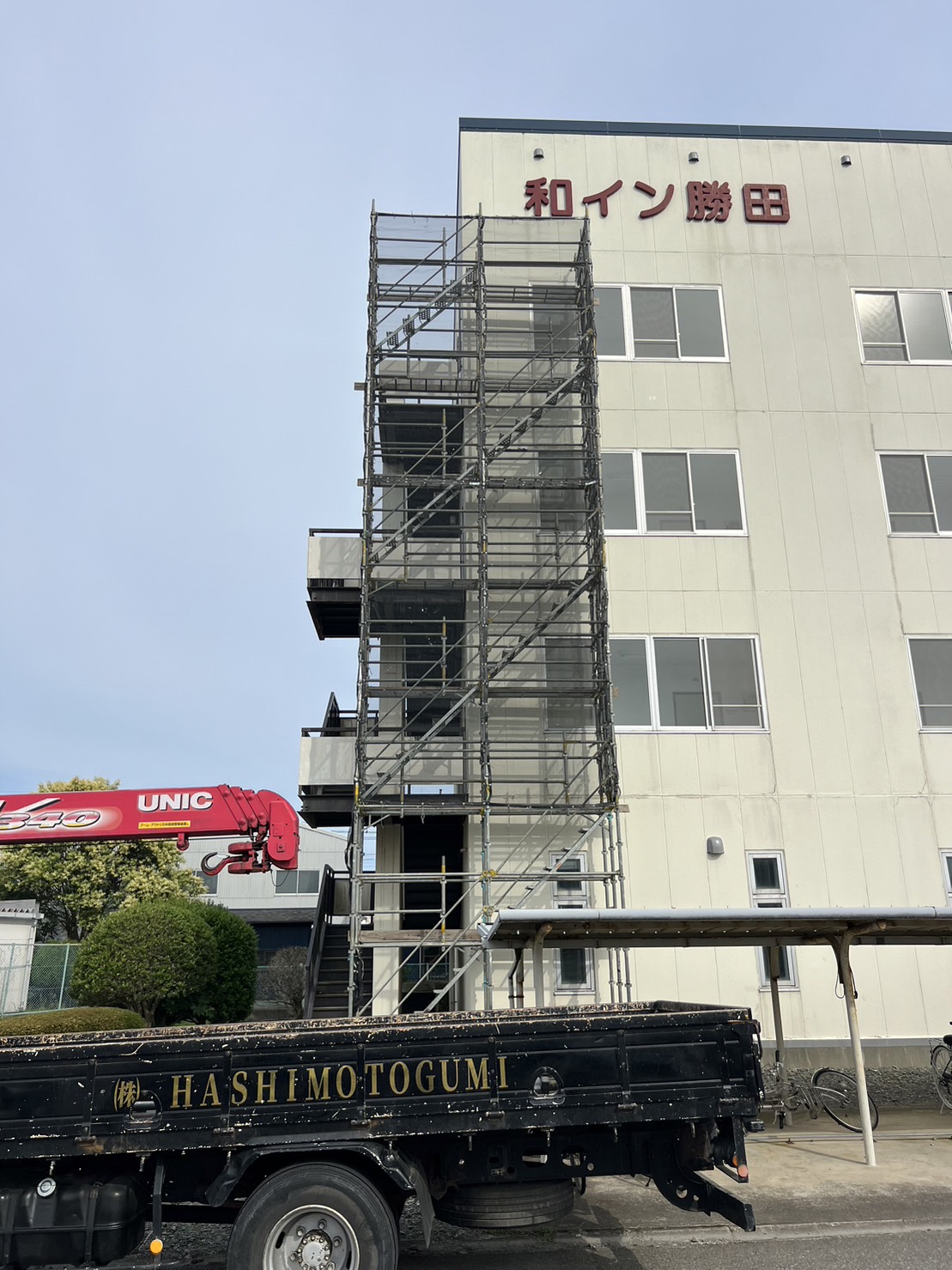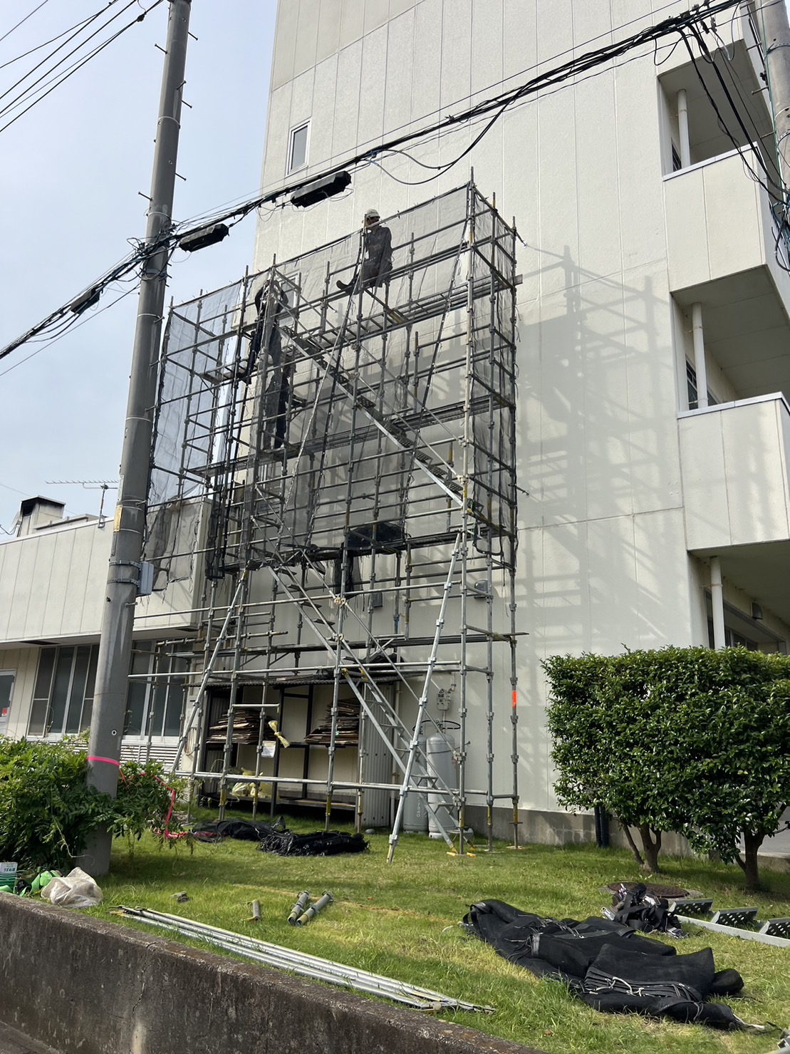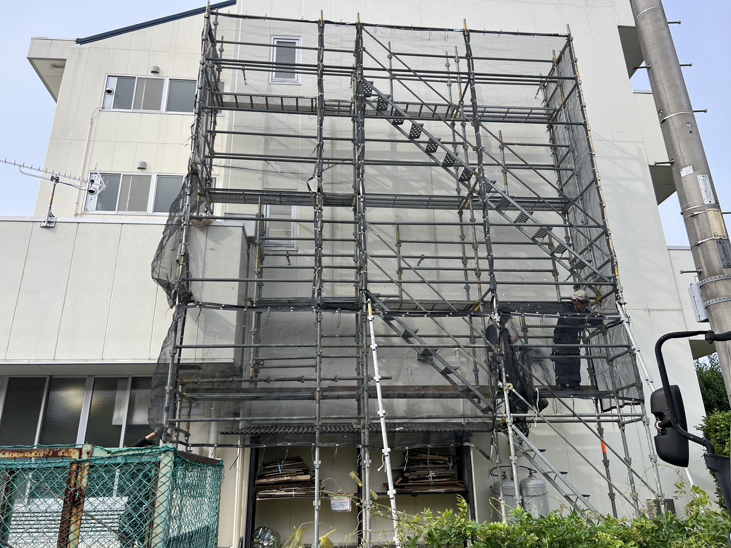 某会社寮の追加足場組立て完了。