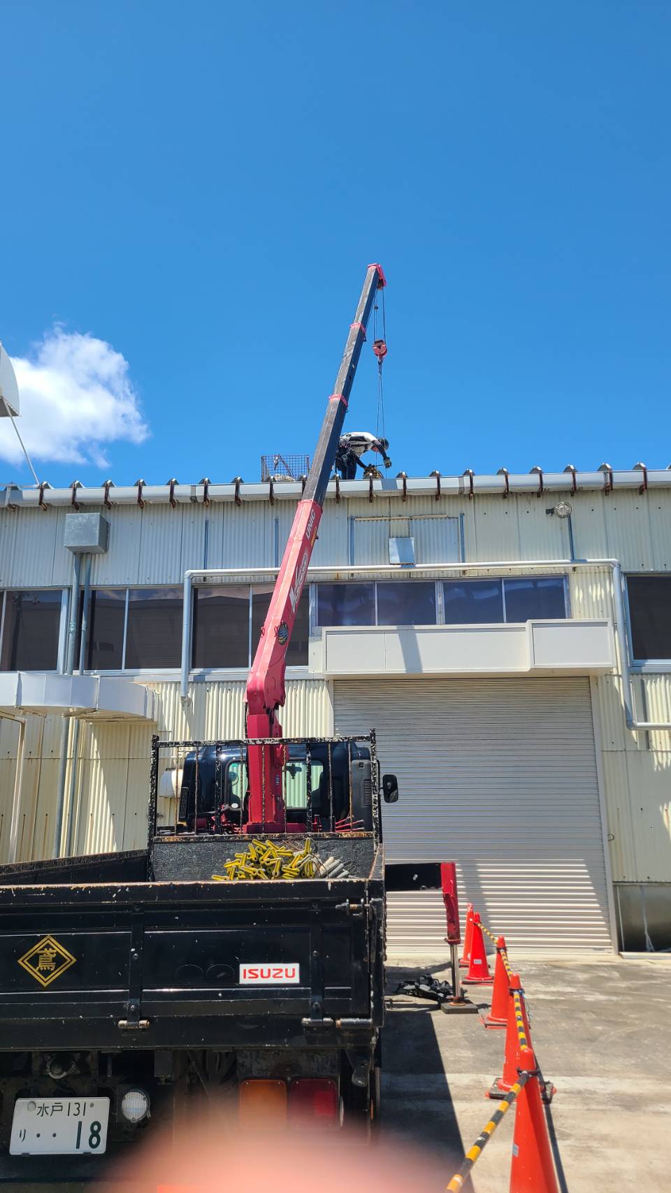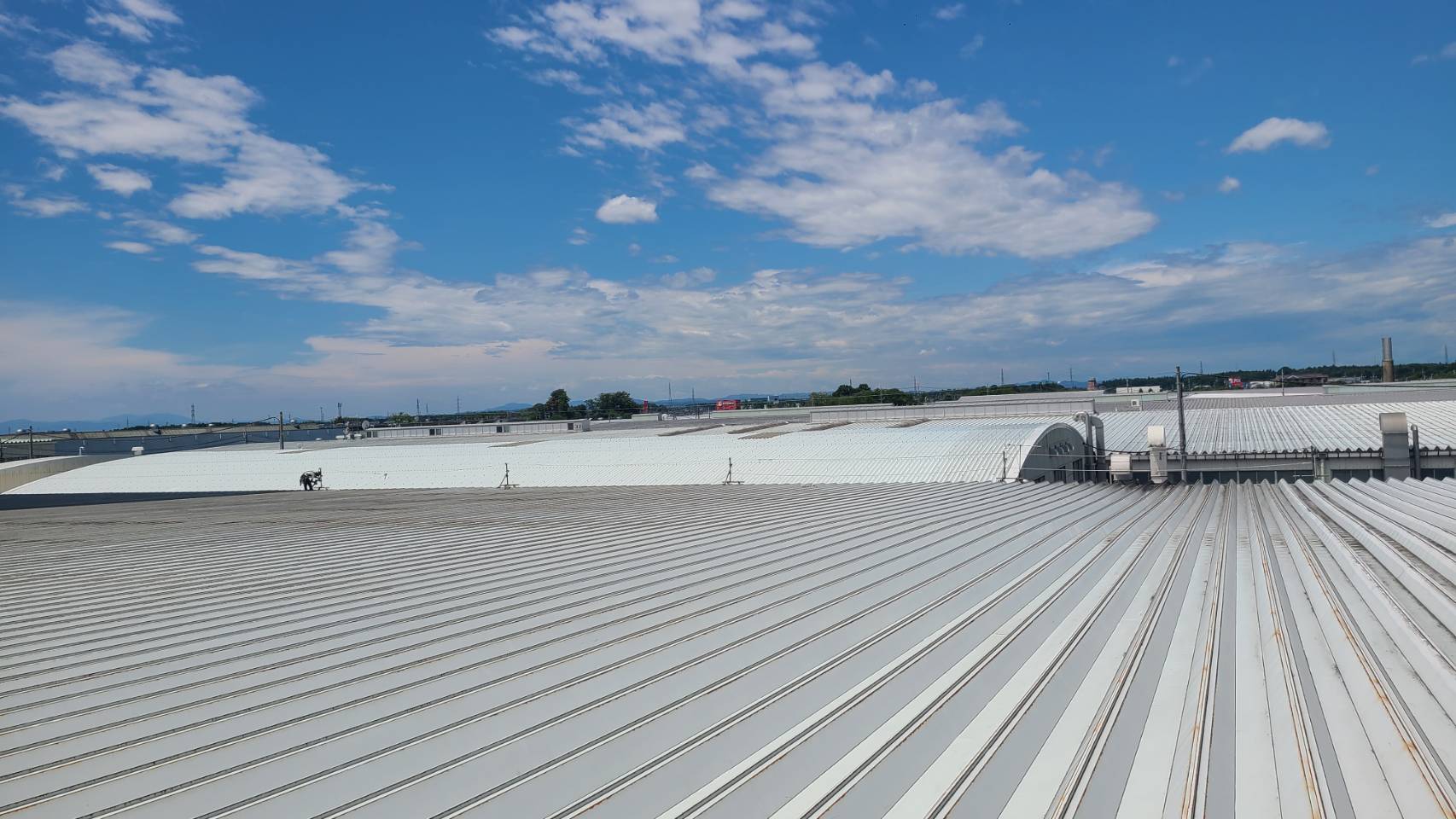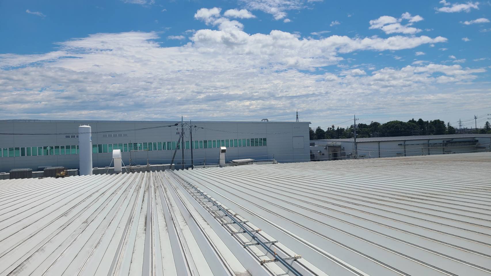 某工場の屋根改修工事用足場等組立て完了。
