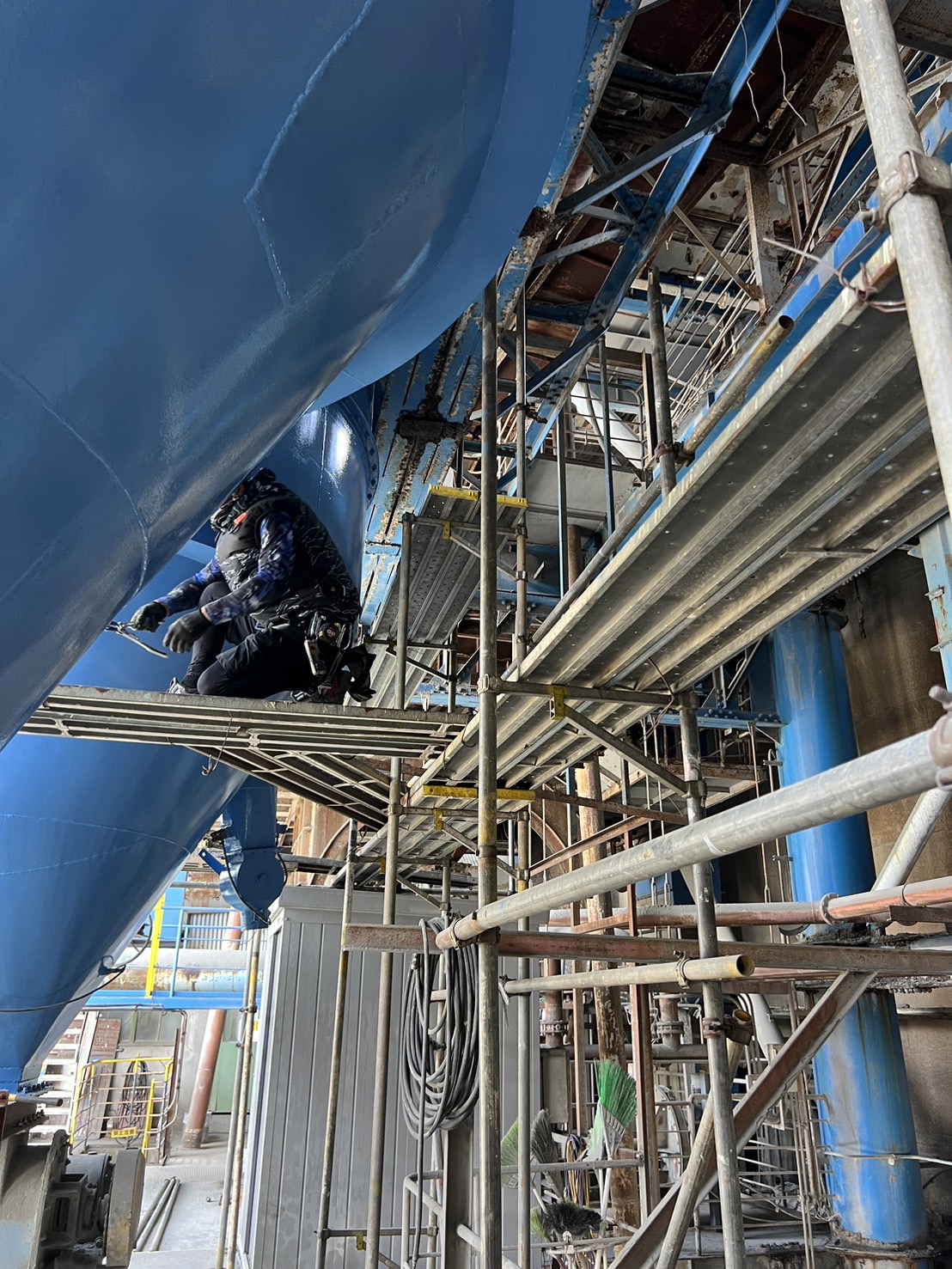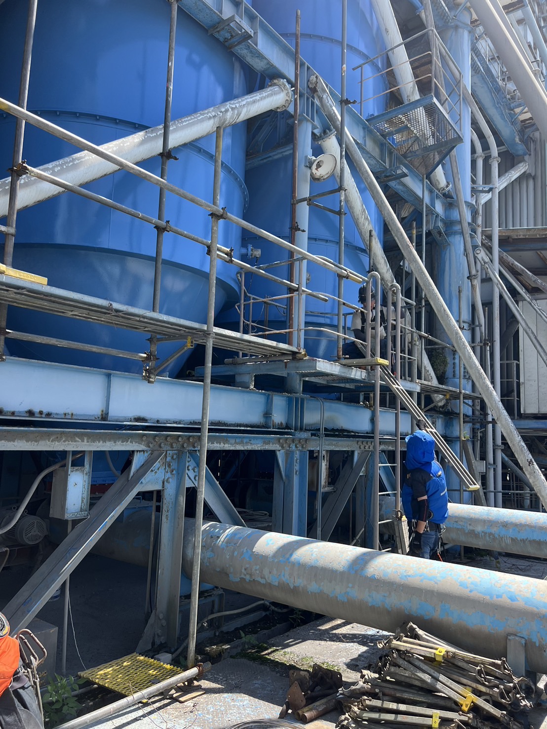 某工場のタンク足場解体。