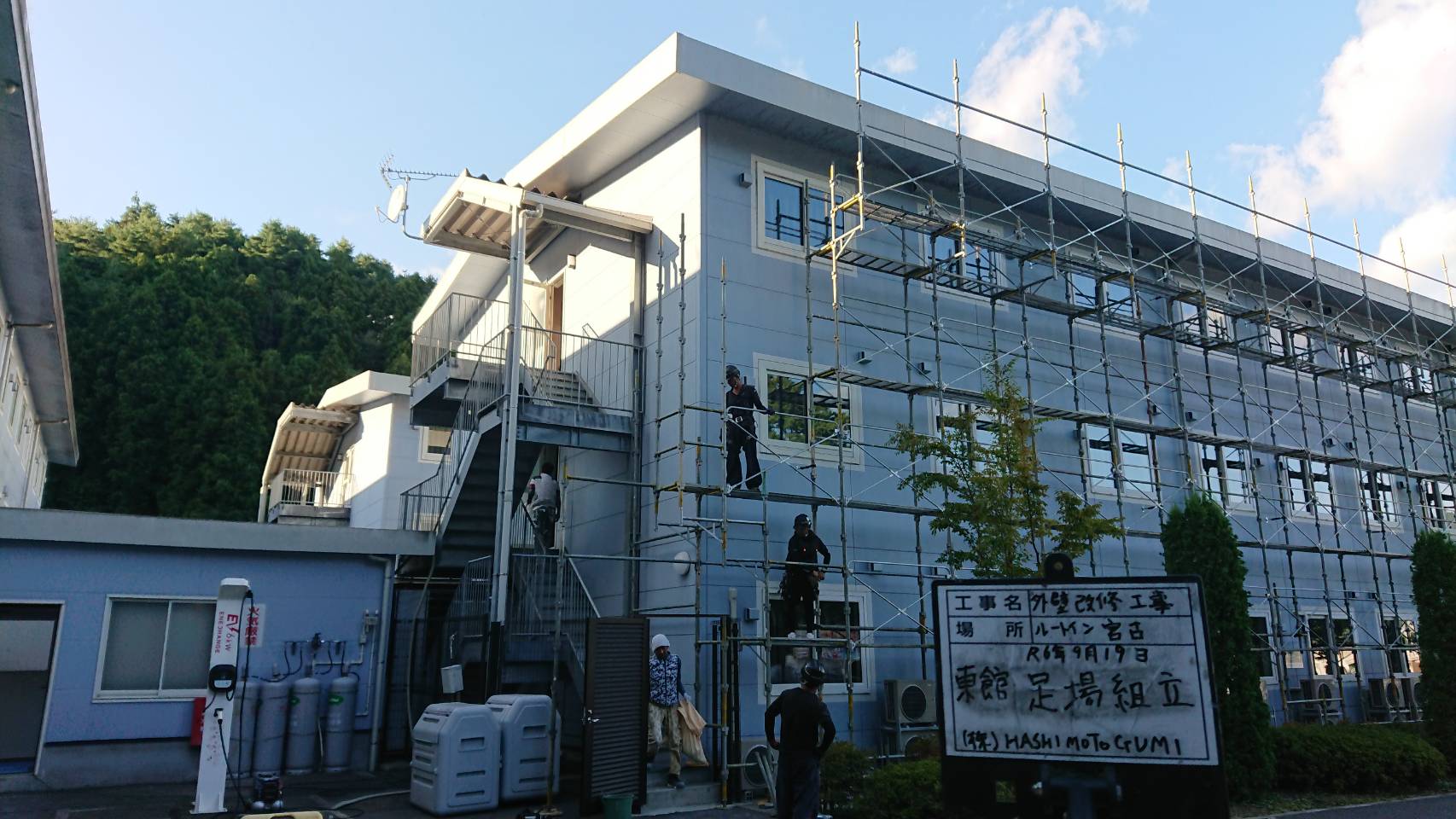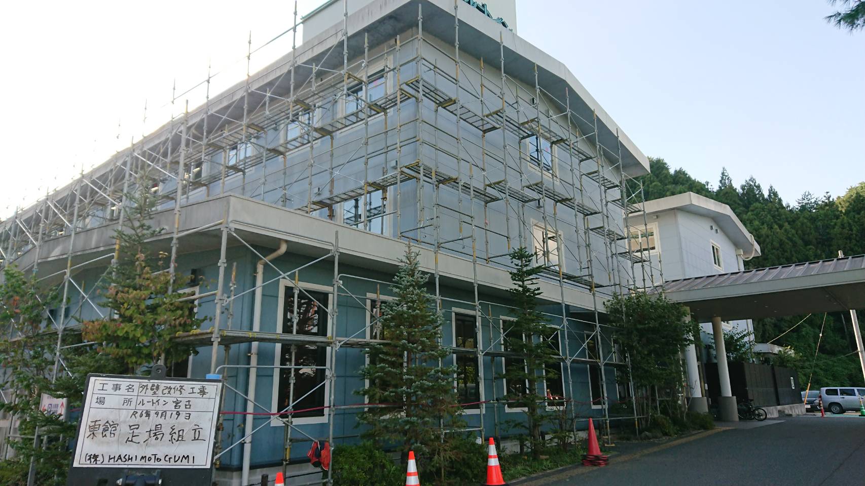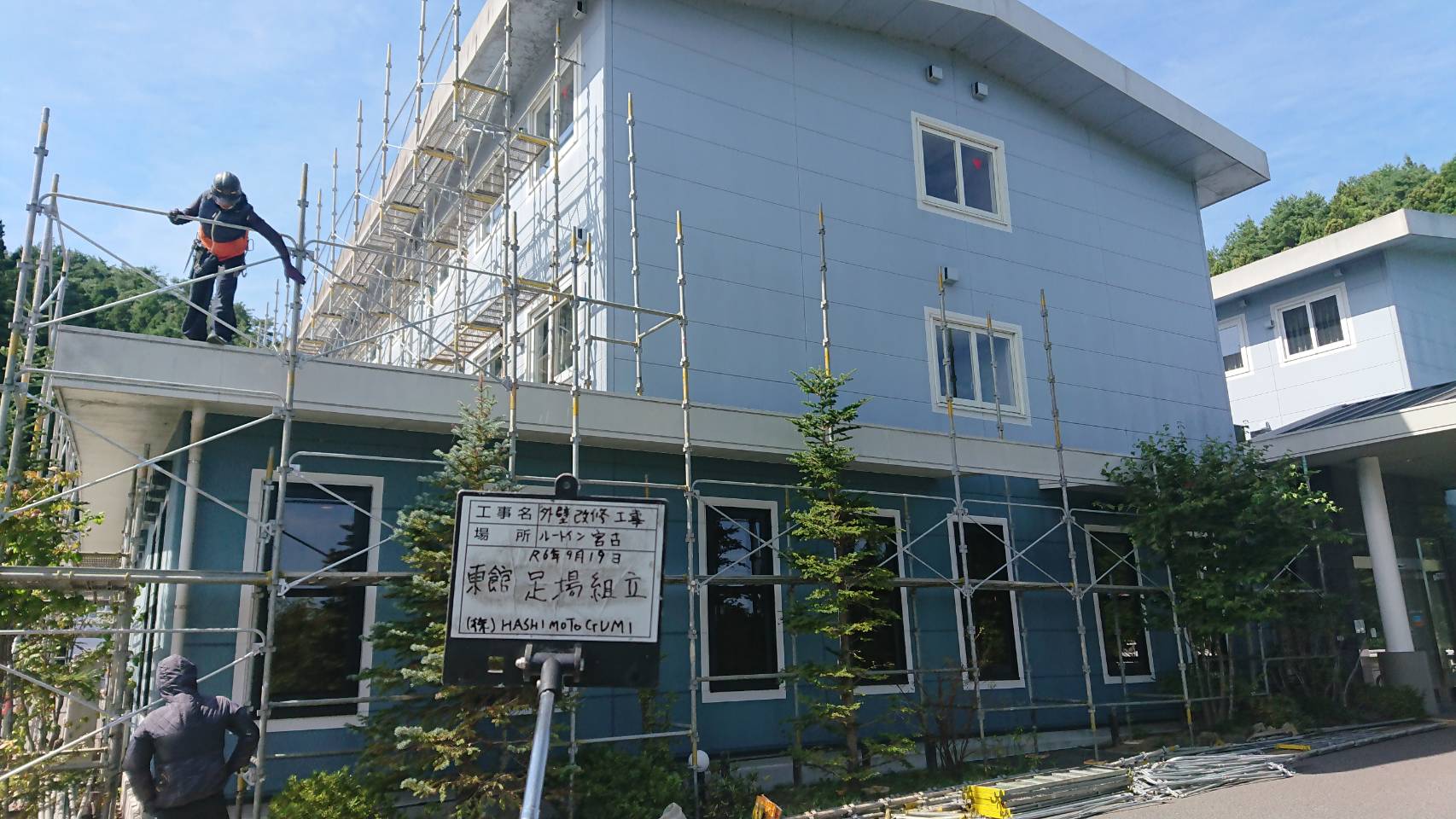 引き続き改修用足場組立て。
