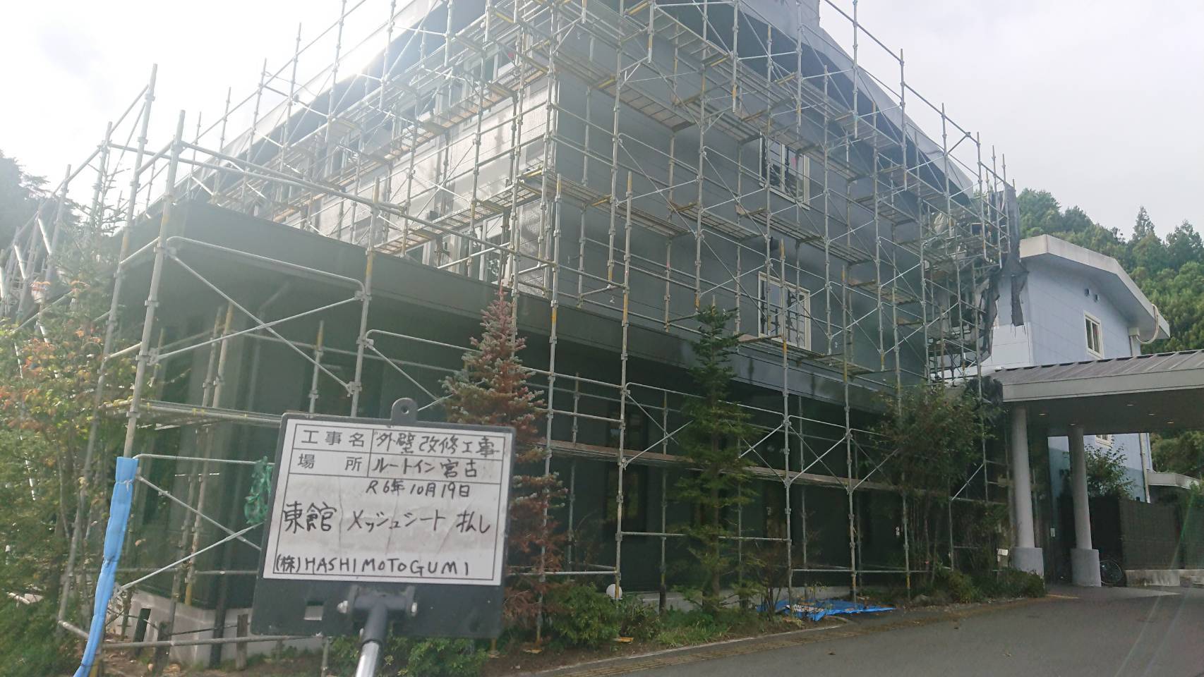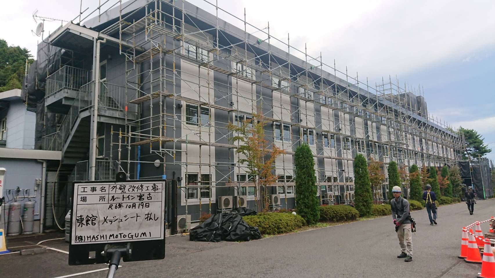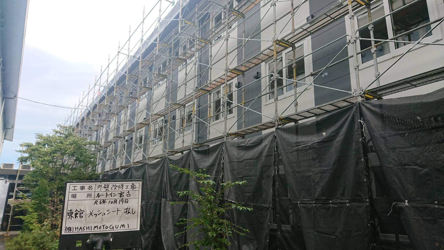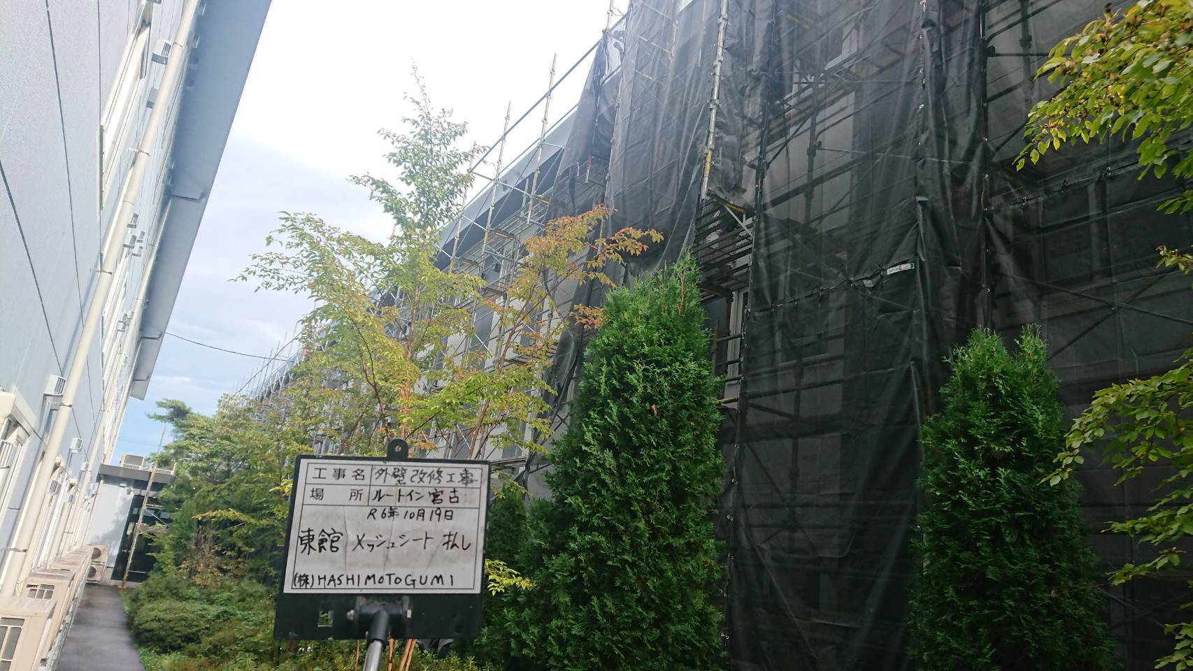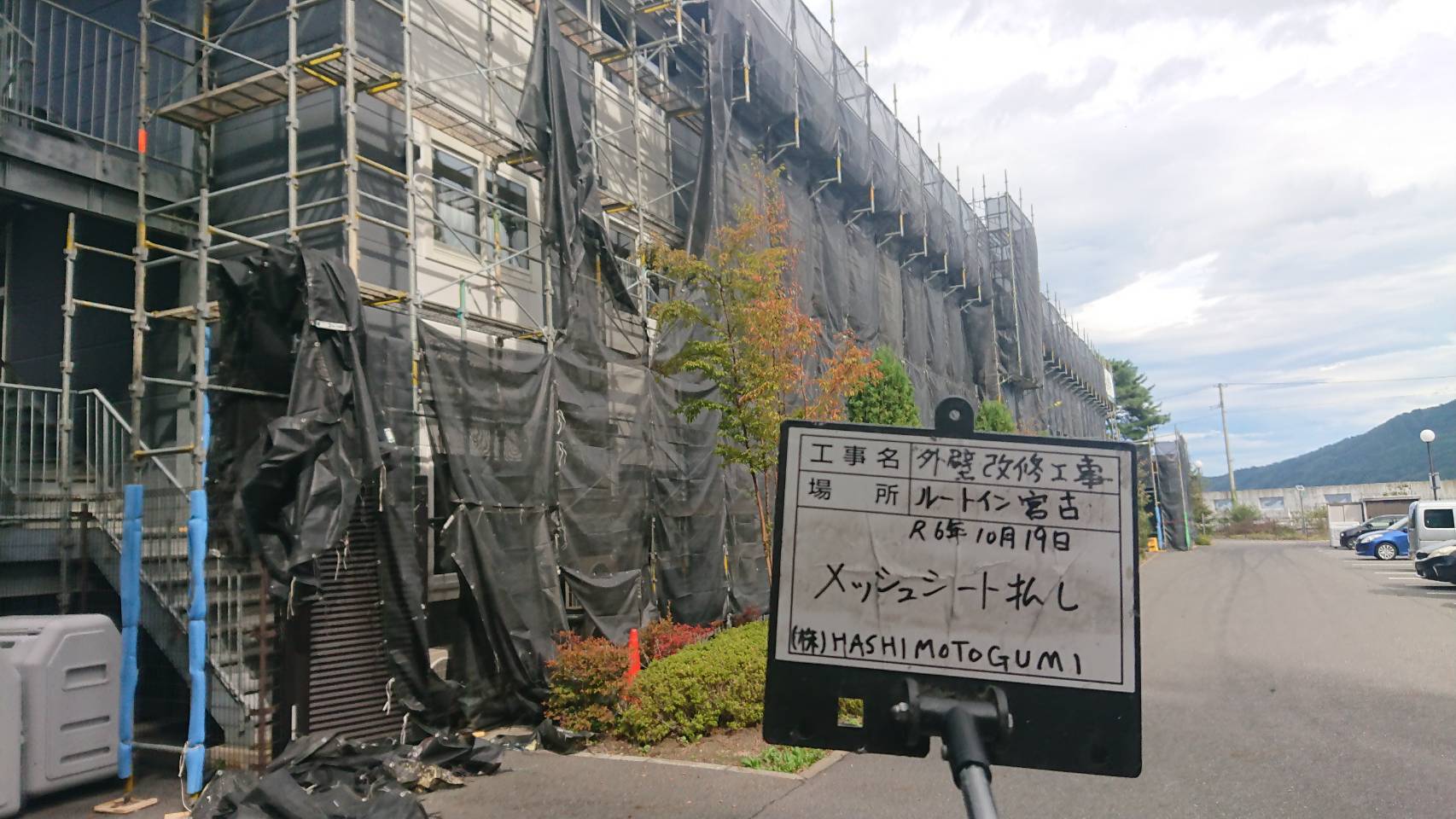 本日移動して到着後の東館改修用メッシュシート解体等。