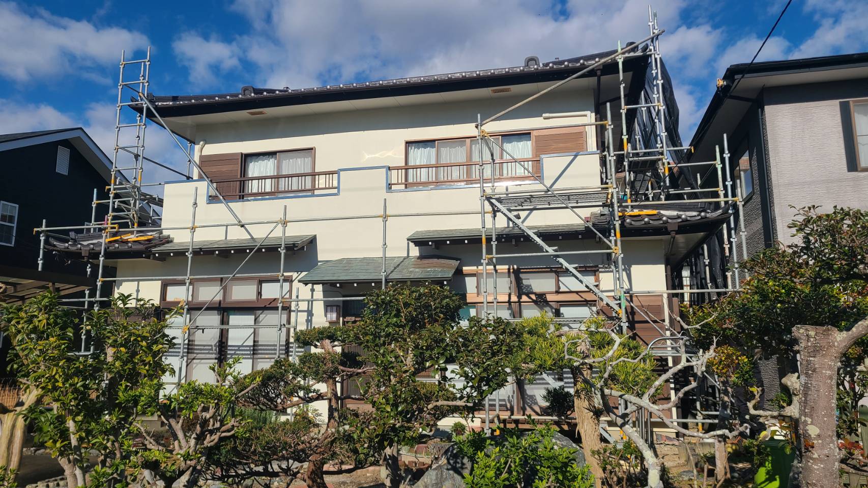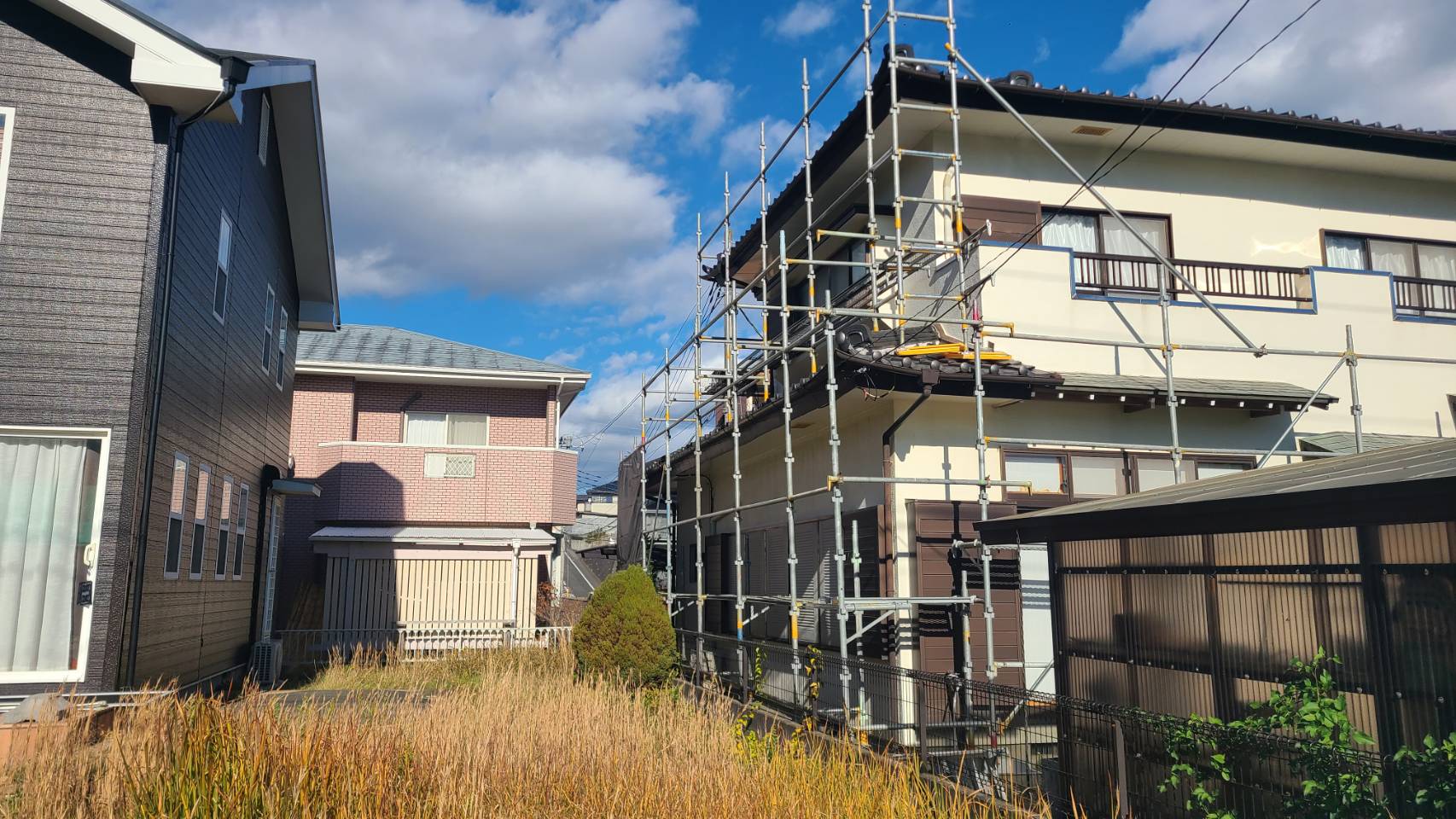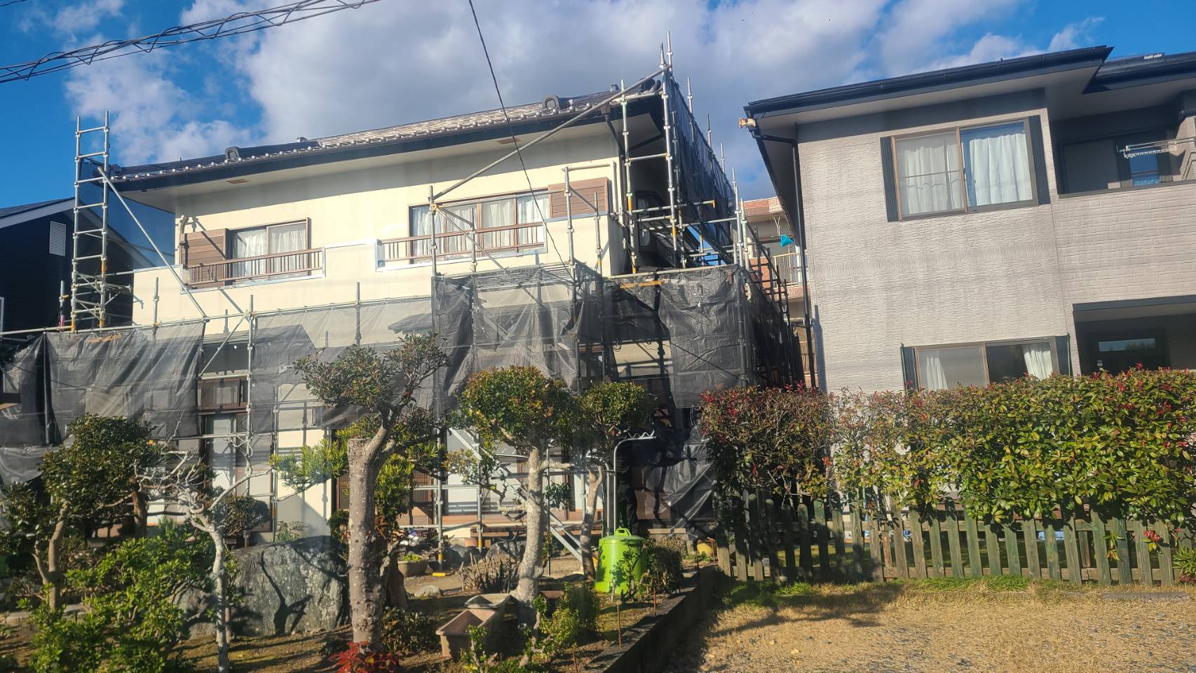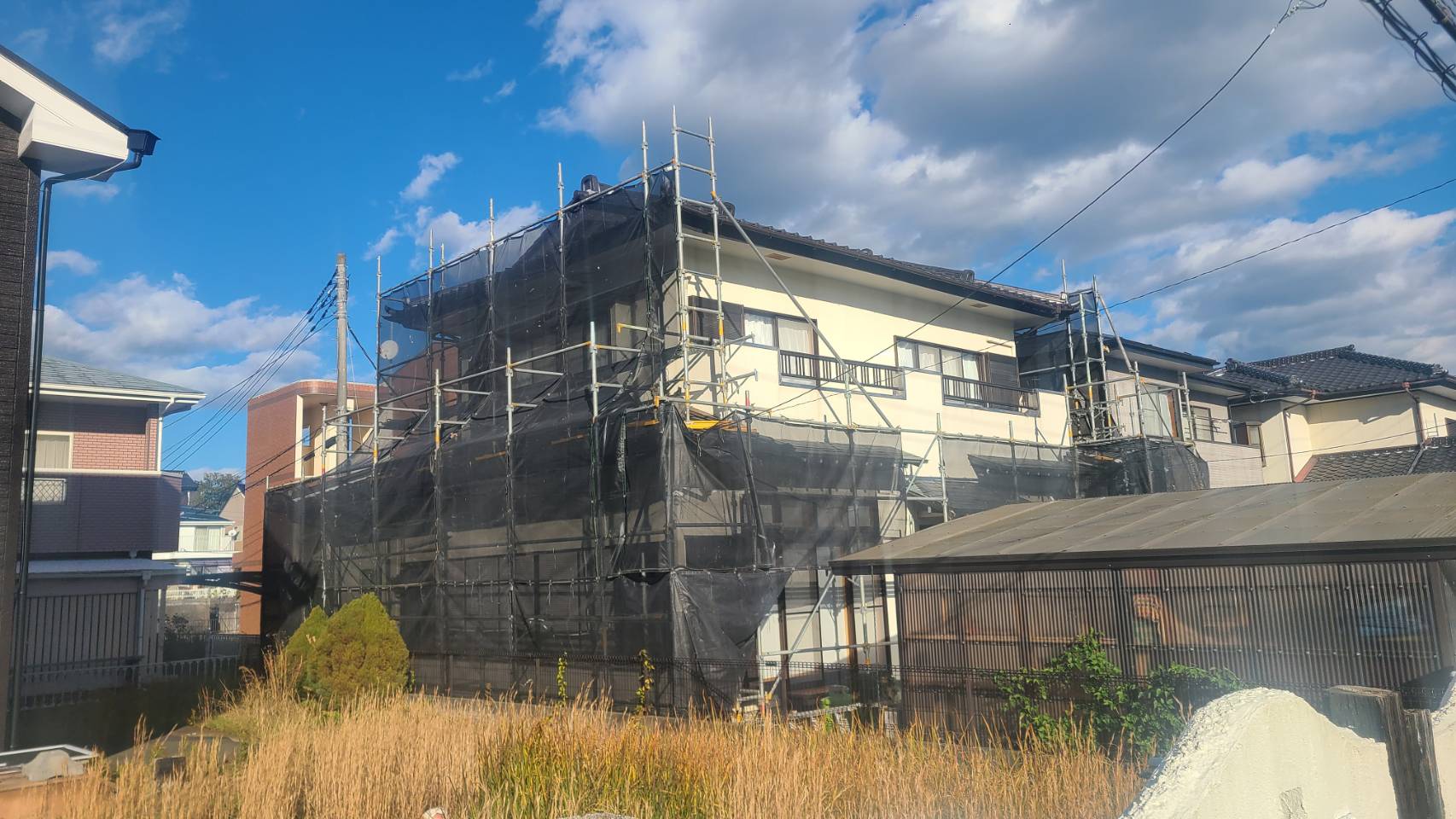 住宅塗装用足場組立て完了。