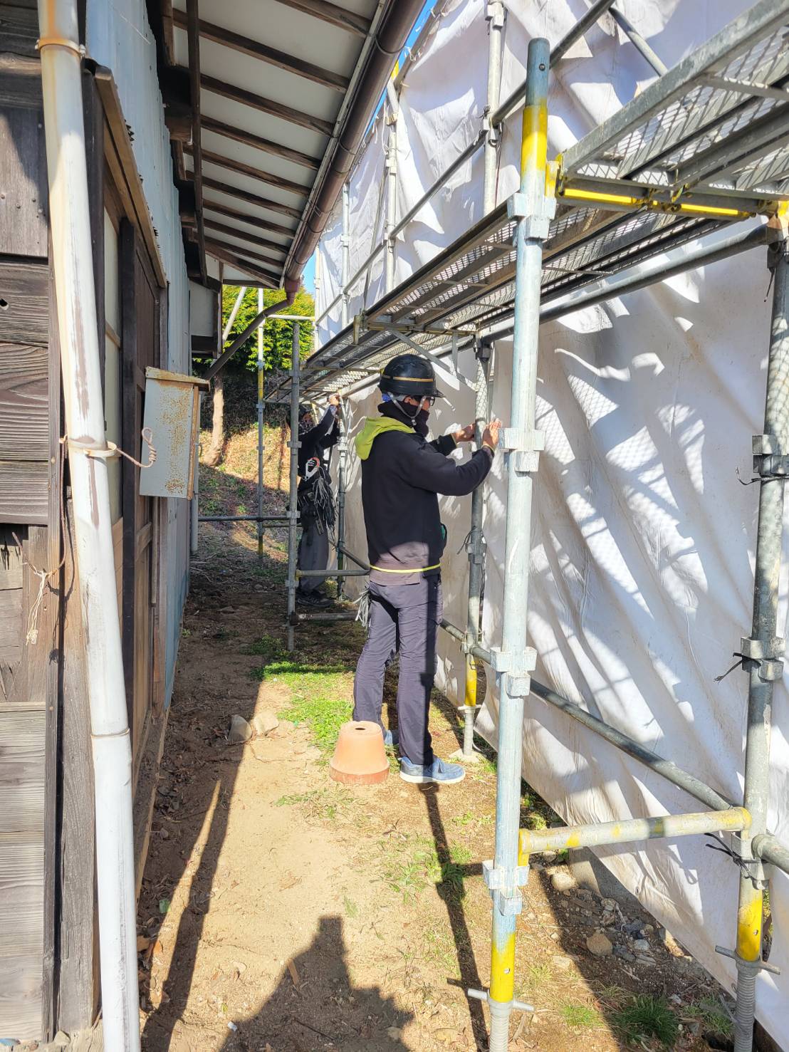 住宅解体養生組立て完了。