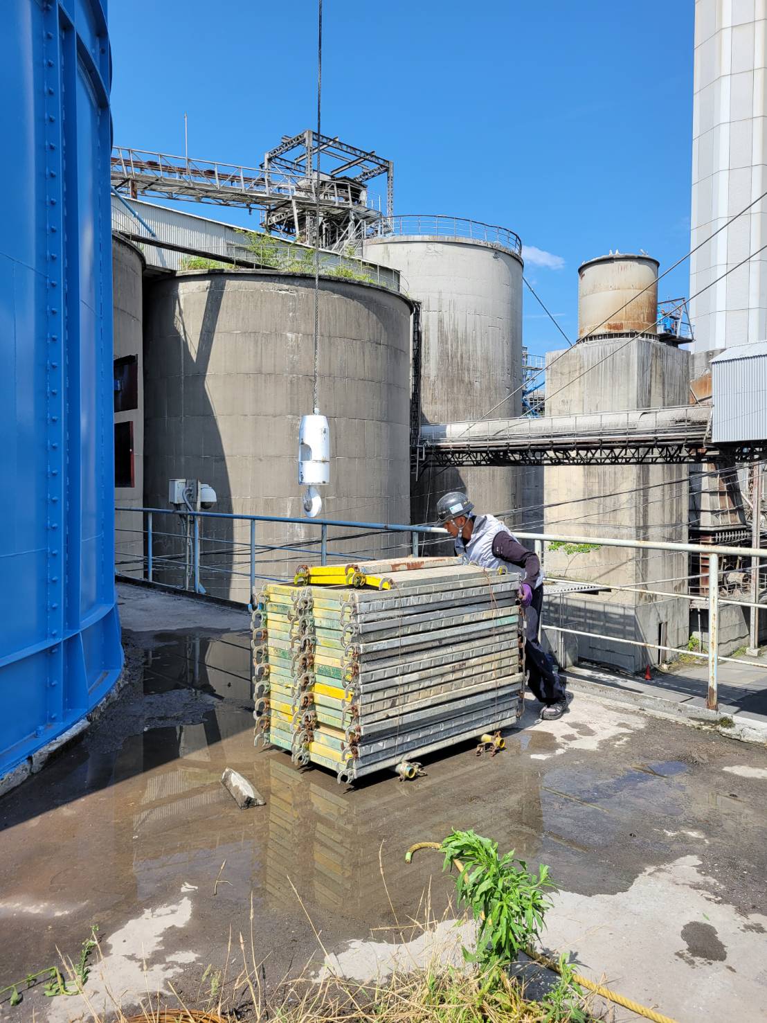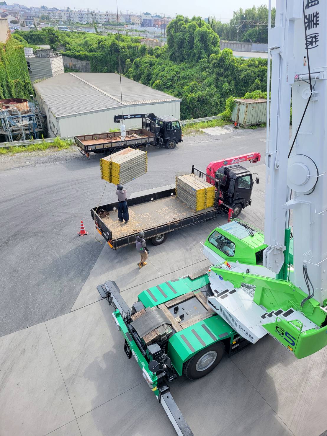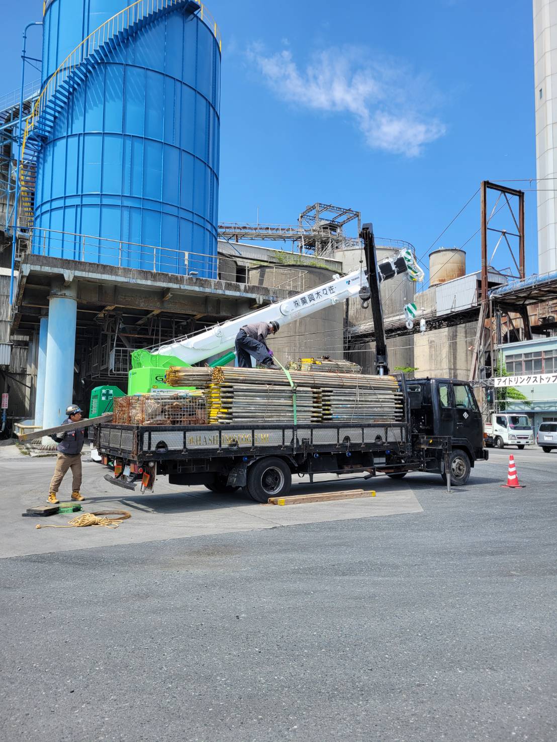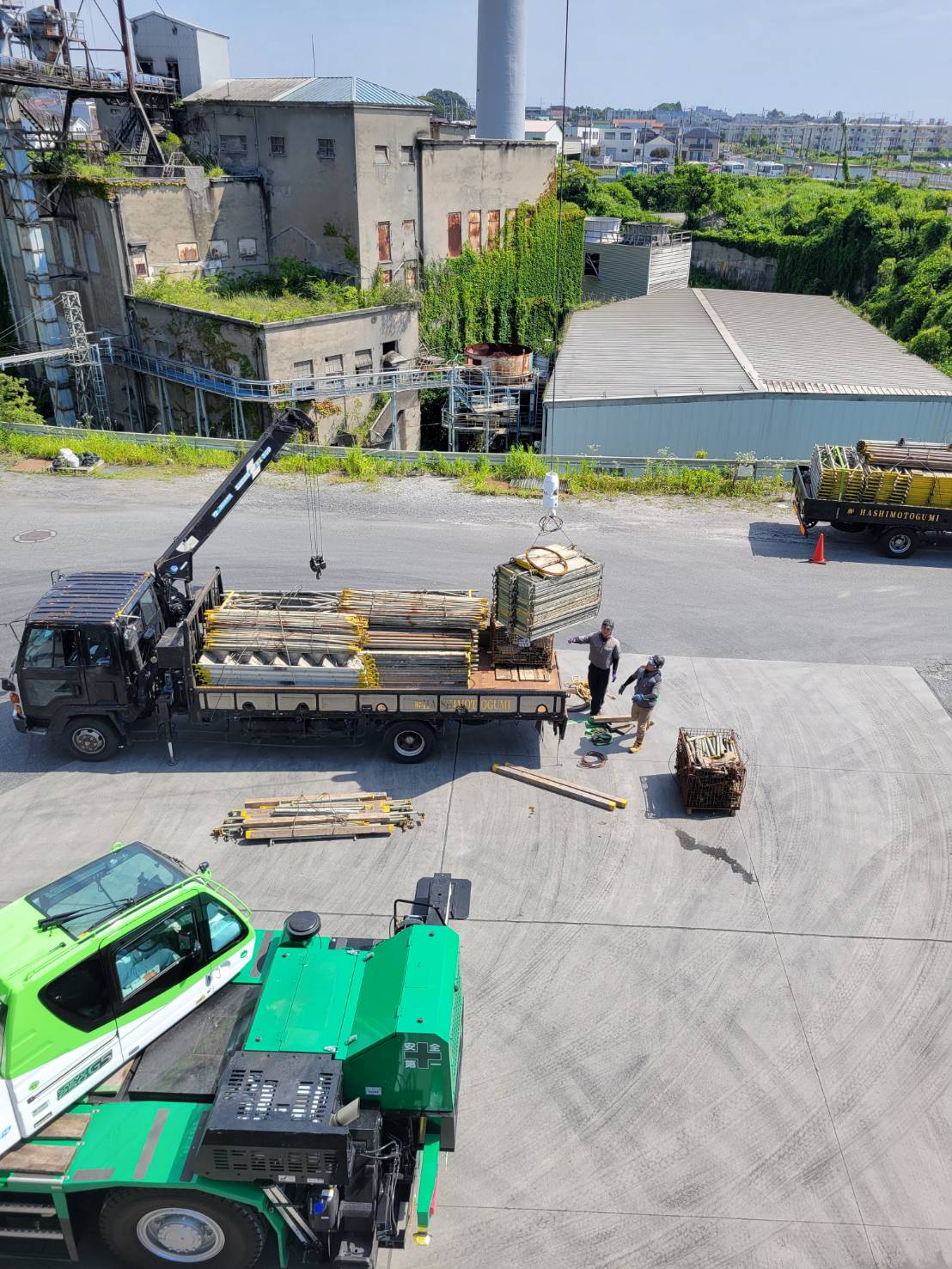 某工場の塗装用足場による資材荷下ろし完了。