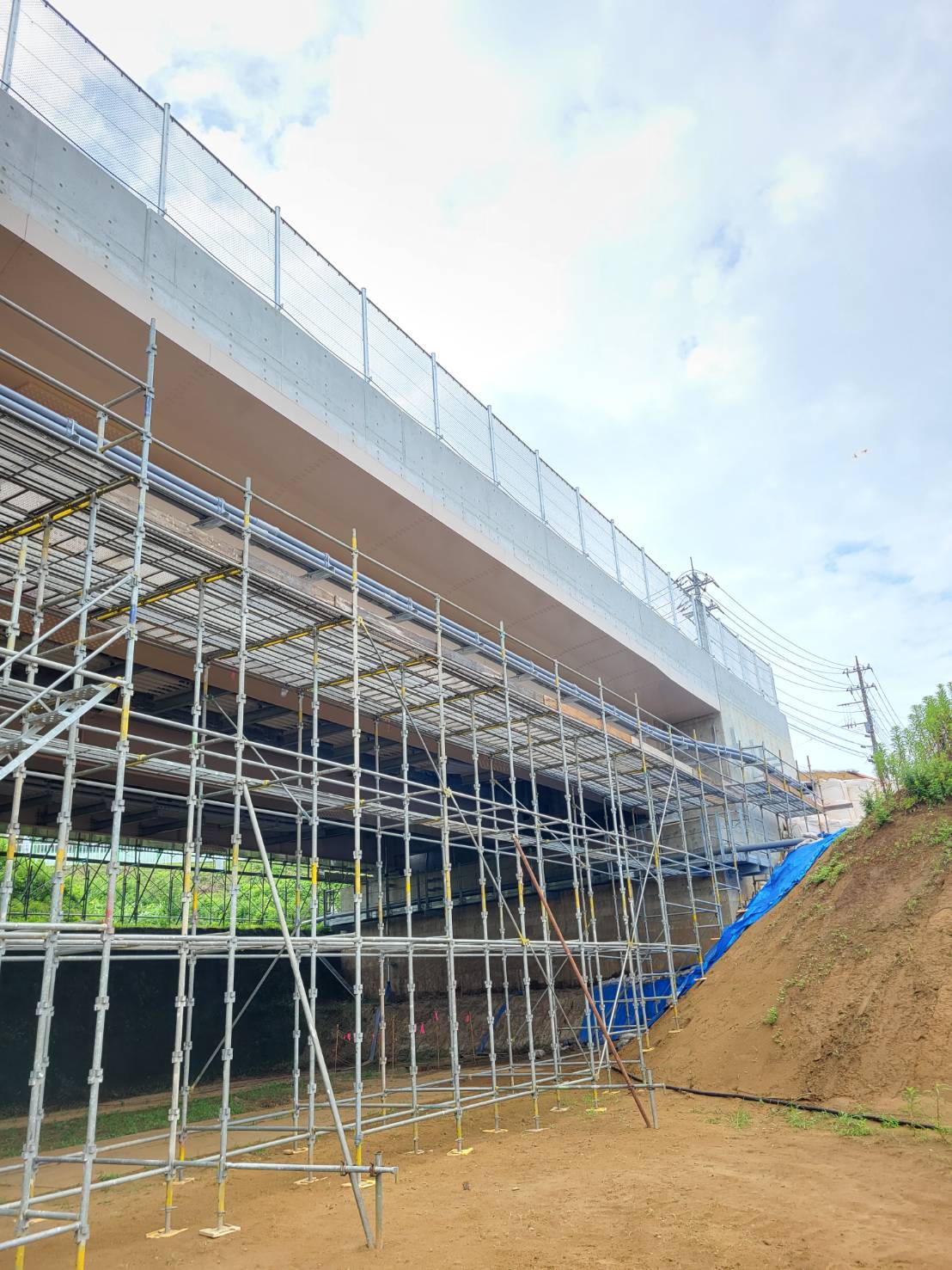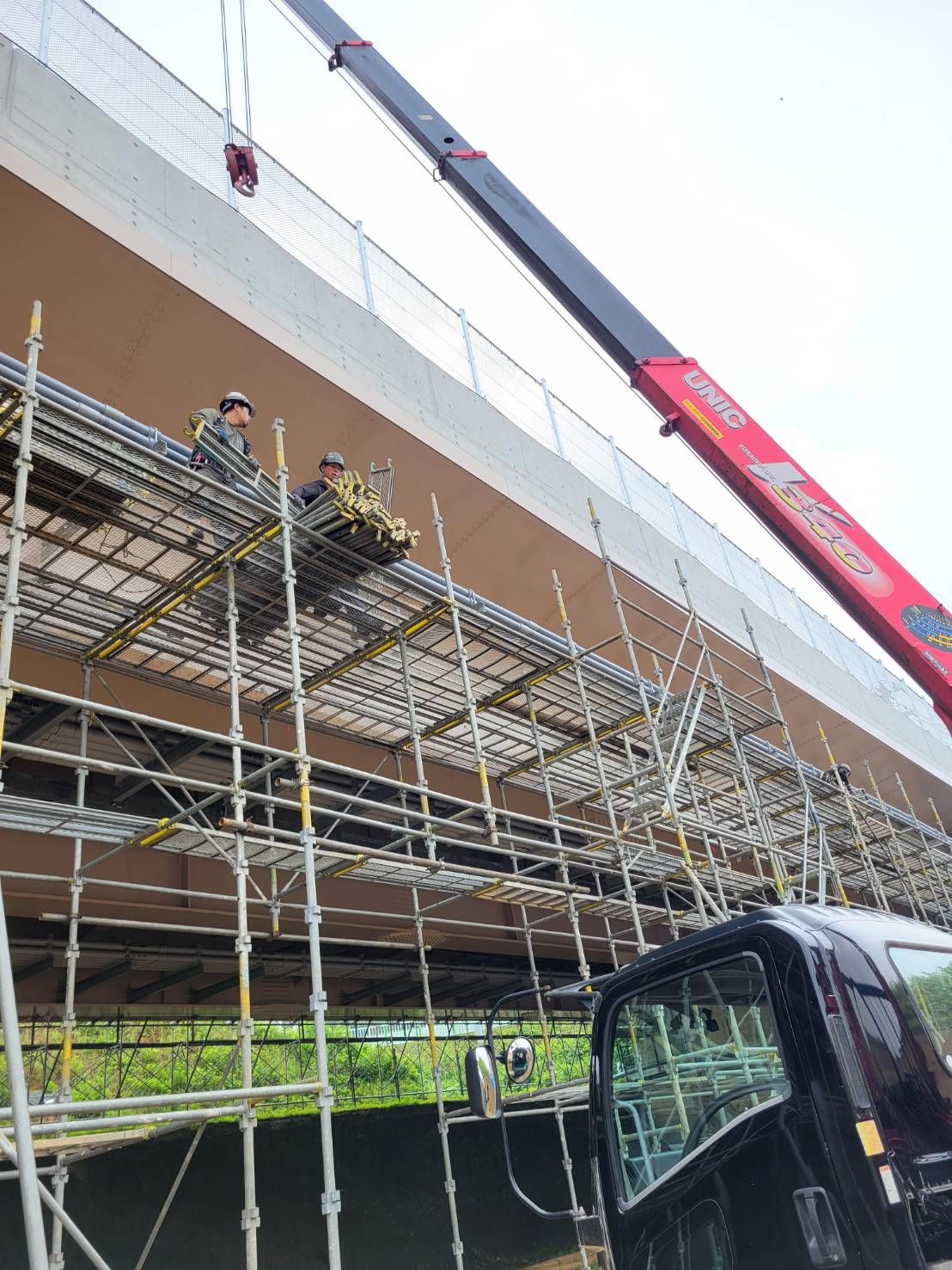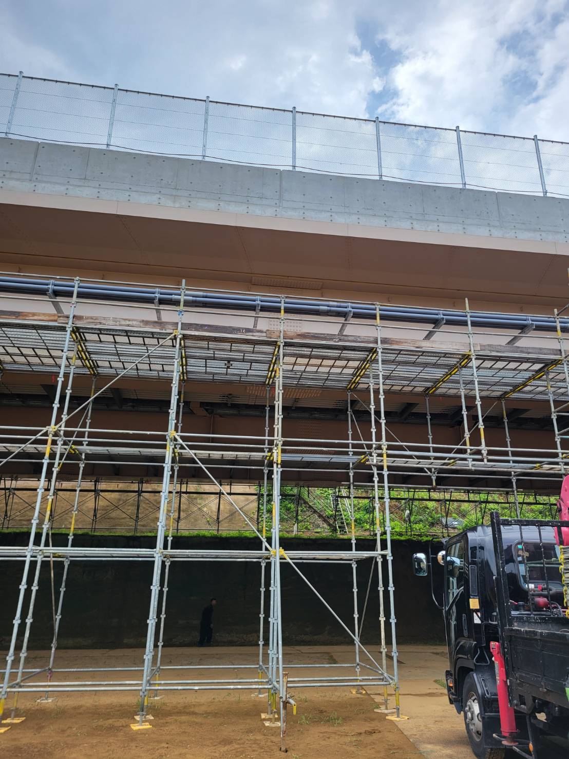 引き続きで某橋の配管用足場組立て完了。