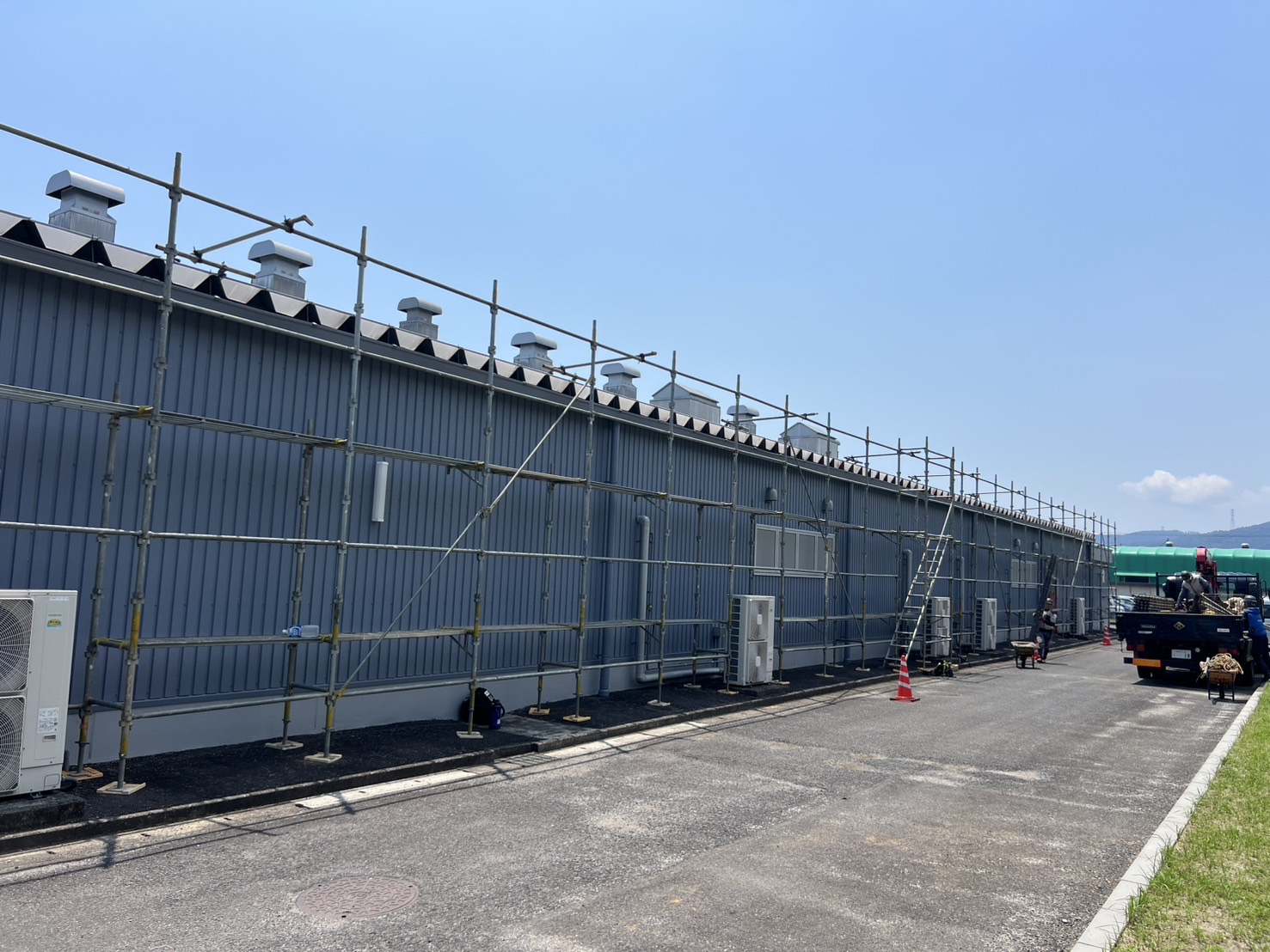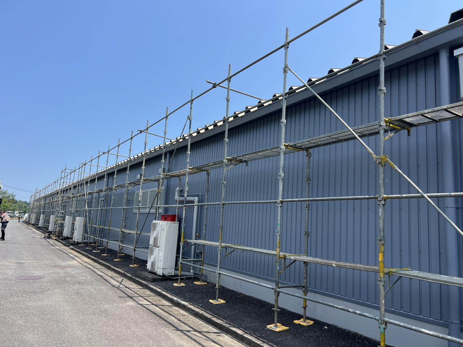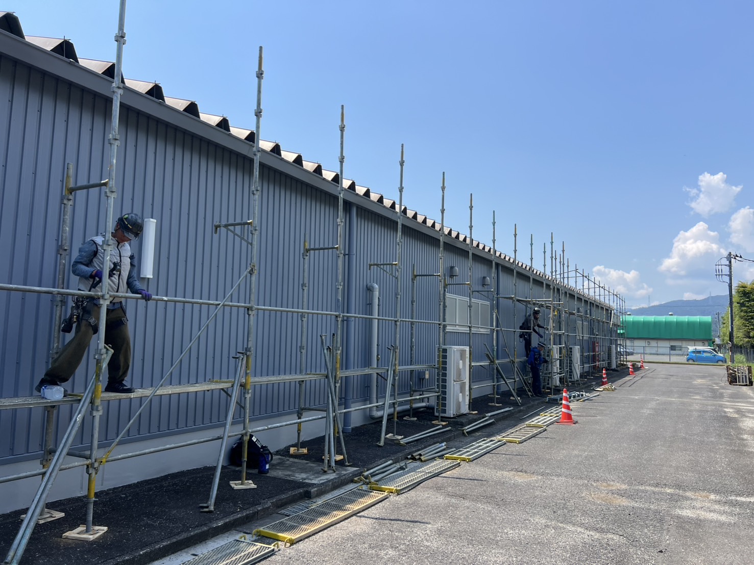 引き続き某工場の雨樋改修工事用足場組立て完了。