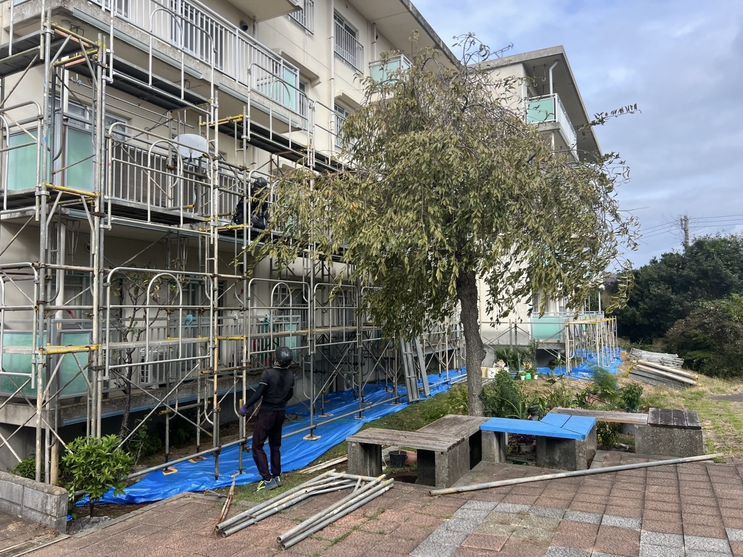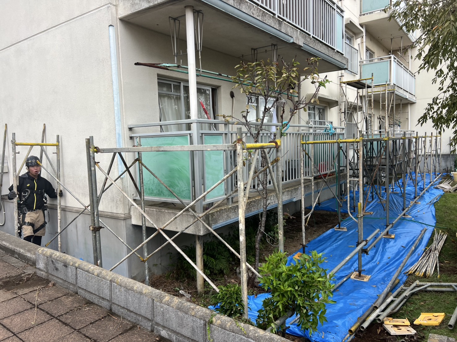 某アパートの塗装用足場組立て。