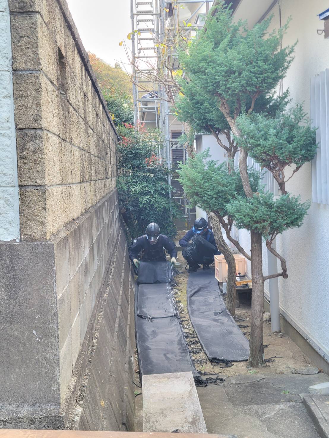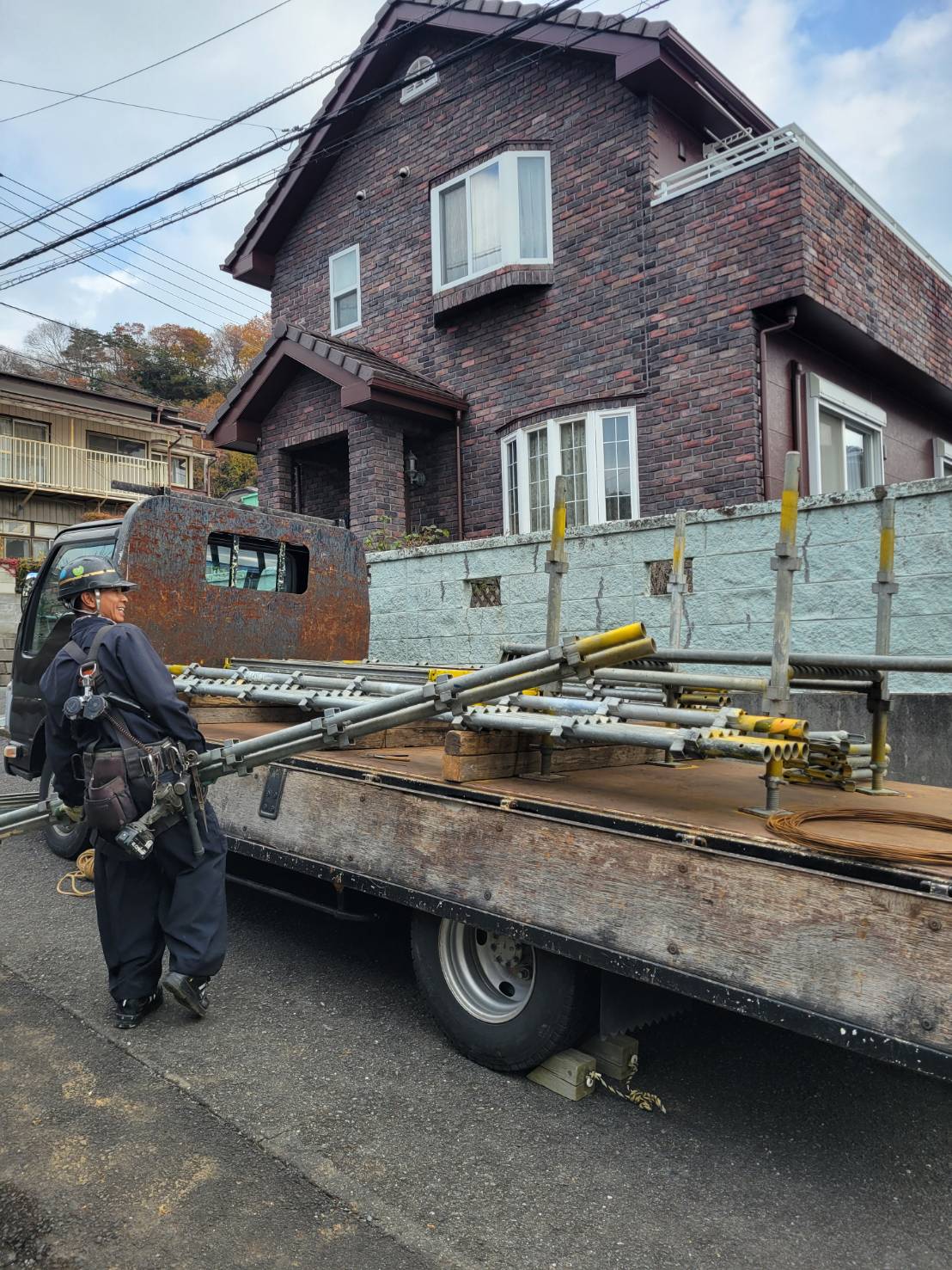 住宅部分塗装用足場解体完了。